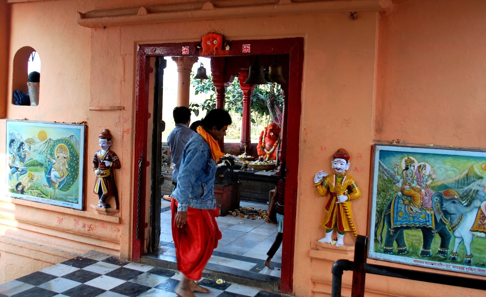 Next stop was the Temple dedicated to the Planet Mars (Mangal Gruh). Another feather in Ujjians cap, this is the only such temple in India. This was a relatively new temple constructed over the ruins of the Original. The Priest was a friendly sort who allowed us to photograph even in the Sanctum. The Shipra river flows just behind it and you could have the chance of a holy dip. There is a bigger version of this Temple located close-by with restricted entry (only those suffering from the adverse effects of the Planet are allowed to enter and conduct remedial oblations in the presence of a Priest)